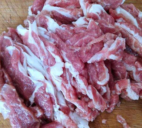 第2步、肉切成厚度約2毫米的大片。