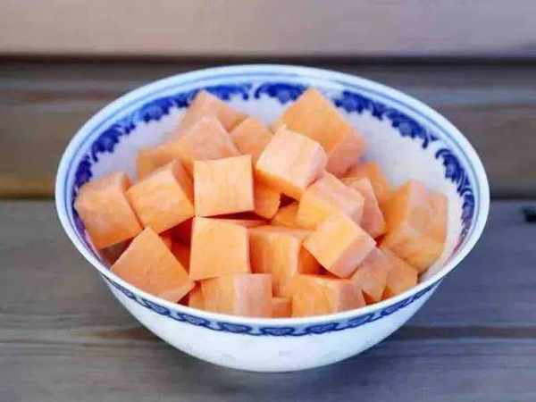 2.紅薯切成小方丁。