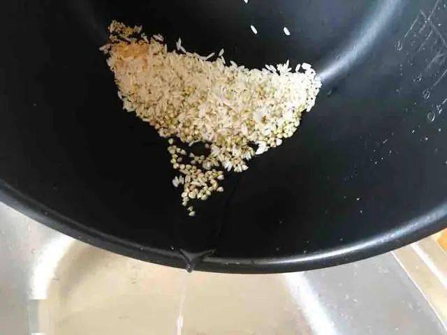 3.小米、蕎麥和糯米放入電鍋內膽中清洗幹凈。