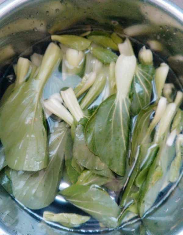 Step1:先把買來的白菜洗凈,攤在一邊檢查水分。洗白菜的時候一定要洗的仔細,不要隻是泡在水裡一會。然後準備一個碗,在碗裡倒入熱水,把嚼好的香菇泡在水裡洗凈,瀝幹水分,把香菇去蒂。