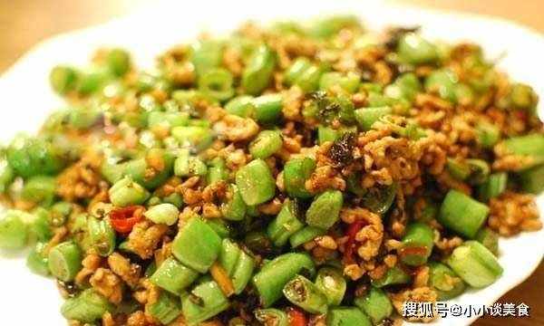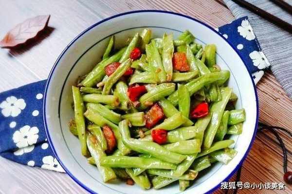 炒豇豆的時候,可以用中火或者大火把豇豆快速炒熟。炒的時候可以從鍋邊倒一點開水,這樣鷹嘴豆熟得更快。攪拌變色後,將肉放入肉中一起攪拌。上菜前加少許鹽調味,加少許醬油或新鮮調味料以增加鮮味。攪拌後即可裝盤。