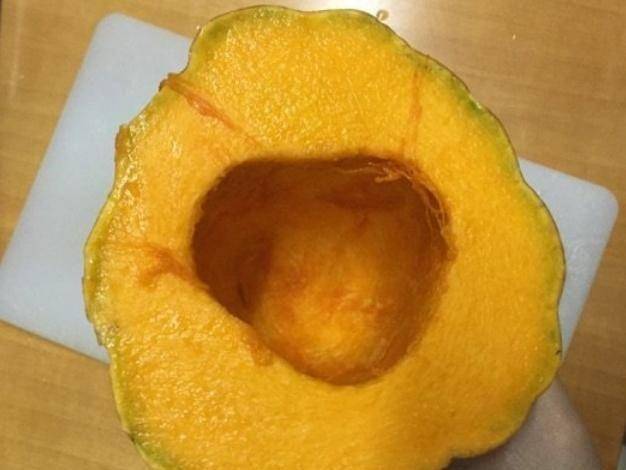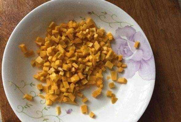 第一步:將買回來的南瓜切開,取出一部分,然後將南瓜去皮,用水沖洗南瓜,沖洗南瓜果肉,沖洗南瓜果肉,切丁。南瓜切丁後,分成兩小份,一份煮至南瓜熟透,另一份留著待用。