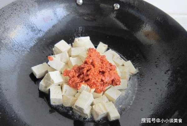 第四步:待豆腐炒香後,將調和好的腐乳汁倒入鍋中,再加入適量清水攪拌均勻。分鐘左右。時間到瞭,撒上胡椒粉和細香蔥!煮大約2分鐘,就可以瞭!