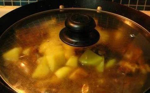攪拌均勻後,蓋上鍋蓋小火燉10-15分鐘,然後撒上蔥花,加少許水。攪拌均勻。然後蓋上蓋子,等待大約5分鐘。當你從鍋蓋上看到鍋裡的湯快沒瞭時,這道菜就差不多好瞭。關火後,不要馬上把碗碟拿出來。將餘熱留在鍋中再煮3-5分鐘。