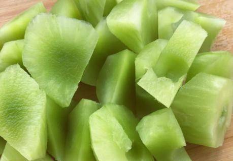 第四步,在這個過程中,生菜去皮洗凈,切塊,等豬腳燉到湯汁濃稠,豬腳軟爛時,就可以放涼拌菜煮瞭。大火然後轉小火繼續燉一會兒;