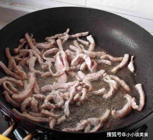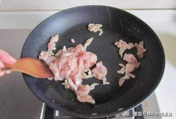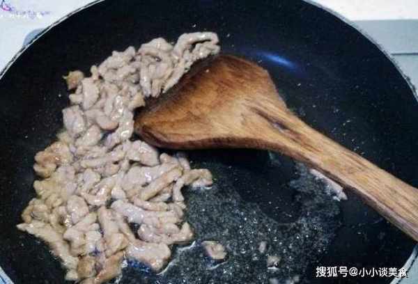 但是如果你做菜比較熟練的話,可以選擇用潤滑油來炒肉片,也就是在熱鍋裡冷油,大火炒,先把鍋燒熱,加油,然後馬上放切碎的豬肉,然後使用切割程序磨碎的豬肉。油燒熱後,肉絲的外層已經形成瞭淀粉,肯定不會粘鍋。一套動作必須一步完成,所以這很考驗技術。