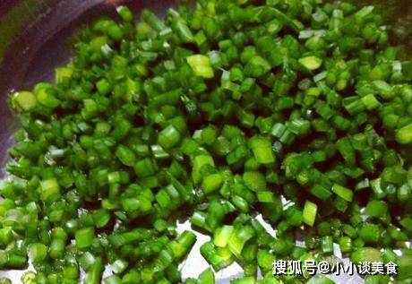 準備過程:第一步是準備一小把韭菜,去根,仔細清洗,然後監測韭菜的水分,將韭菜切成丁,放入碗中揉成泥。同時加入2個雞蛋;