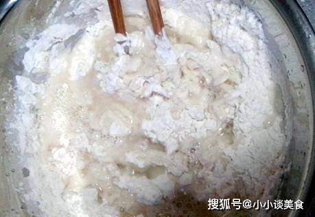 制作過程:先將面粉放入碗中,加入開水,用筷子攪拌至呈絮狀,然後每份加入少許冷水,揉成光滑的面團,蓋上保鮮膜。並休息半小時;