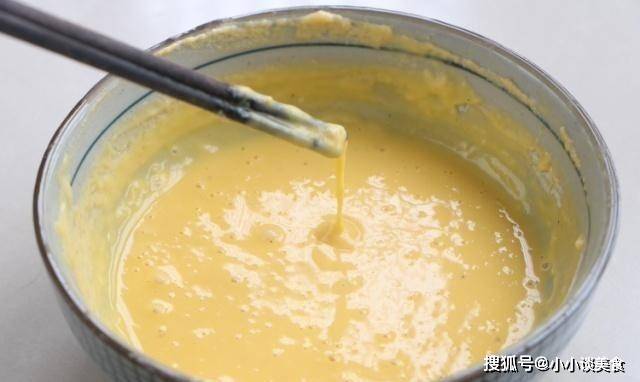 2.拿起面團,在碗裡加入2勺面粉,在傢裡和適量的水和成濃稠的面團,打入2個雞蛋打入碗裡攪拌均勻,最後攪拌成流水狀。可以用筷子稱量的空間;