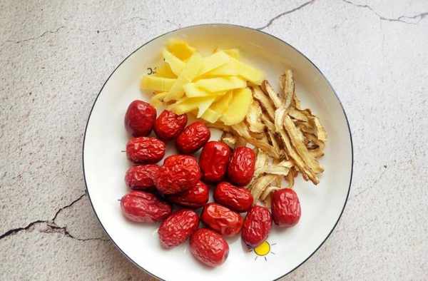 步驟二:生薑切片,當歸紅棗浸泡10分鐘後洗凈。