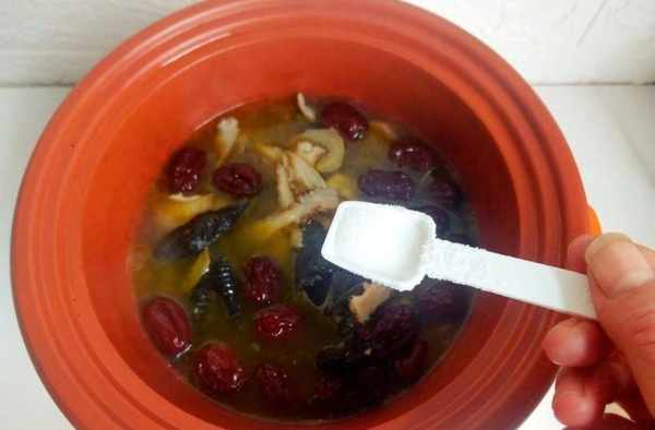 步驟八:時間到,放適量的鹽,湯味很鮮很香,不需要放雞精,鹽也不需要放多。