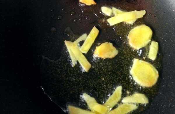 步驟四:鍋內放一丟丟油,放生薑爆香。