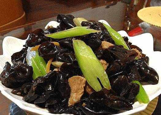 8、翻拌幾次後,加入泡好的黑木耳;