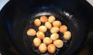 將鵪鶉蛋去皮瀝幹水分後,即可入鍋煎制。取一個平底鍋,加熱油。趁著油鍋慢慢冒煙的時候,可以把鵪鶉蛋放入鍋中,開中火。待鵪鶉蛋兩面微微金黃時,即可撈出。記得把多餘的油瀝幹,不然太影響口感瞭。過多的脂肪也會影響您的健康。