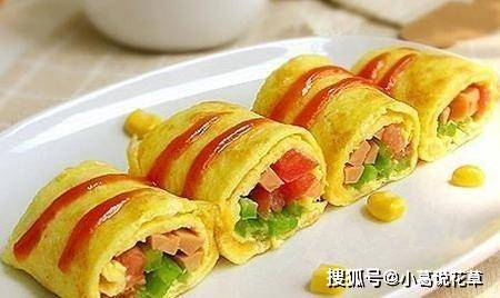 隨著底部的蛋液逐漸凝固,可以用抹刀把它搟成蛋卷,兩面翻動,確保雞蛋內部熟透後才能出鍋。將卷好的蛋卷放在砧板上,切成小卷,享用美味的早餐。