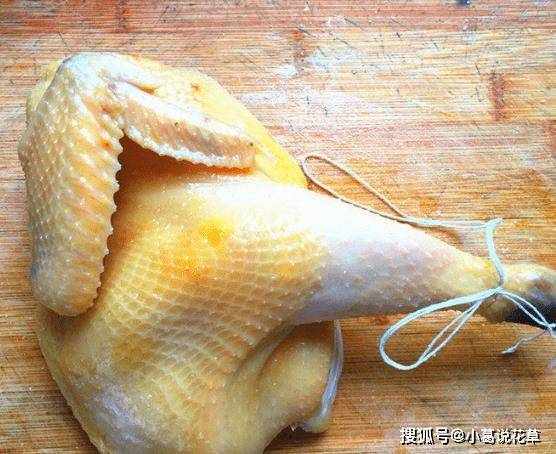 第二步:雞洗凈後撈出,瀝幹多餘水分。待雞瀝幹水分後,取準備好的鹽,在雞全身均勻抹上一層鹽。雞肉抹好後,用棉線紮起來,然後掛在通風處晾幹,這樣雞肉咸鮮可口,口感好。