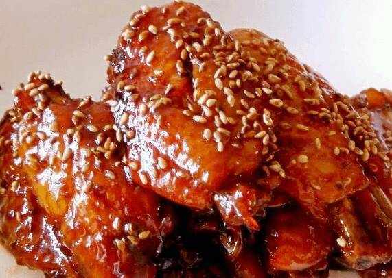 雞翅醃好後,就可以直接按下電飯鍋開始煮瞭。大約半小時後,你會聞到雞翅的味道,就可以把雞翅拿出來瞭。為瞭更好看,可以撒上白芝麻,這樣更好看,還能增加香氣。做出來的雞翅,香香可口,不比帶輪子的雞翅差。