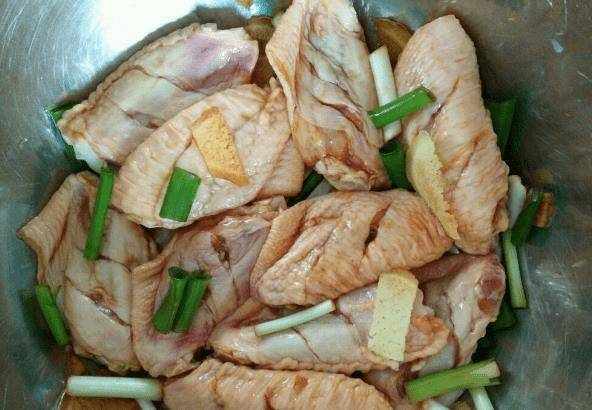 我們先把買回來的雞翅用清水洗凈,然後用刀在雞翅上劃幾刀,這樣雞翅吃起來更入味。然後將雞翅放入電飯煲中,加入料酒、蔥、薑和醬油。冰糖加一罐啤酒,將雞翅醃半小時,醃一會去腥味,雞翅吃起來會更鮮美。