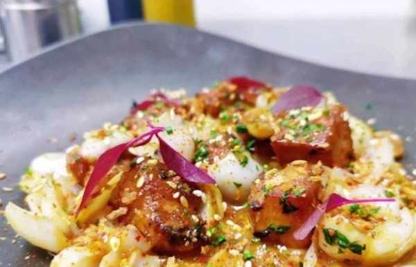 原標題:熏培根配百合白蘭地、黑胡椒芝士墨魚餅、黑金榴蓮蝦