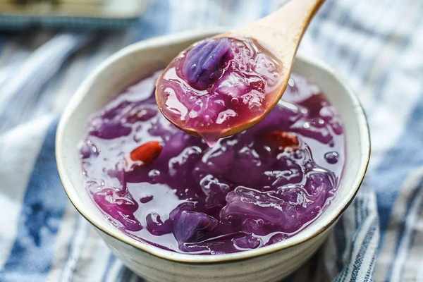 紫薯含有豐富的膳食纖維、澱粉、維他命及微量元素,具有抗氧化、抗腫瘤、增强記憶、預防高血壓、修補心肌、減輕肝機能障礙、增强機體免疫力等功能。
