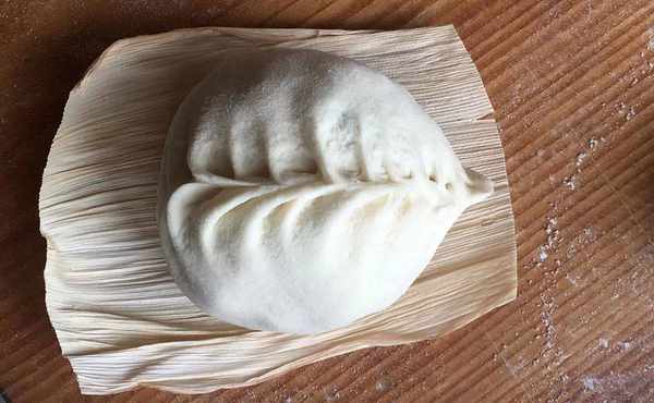 6、在面團上撒些面粉,將面團從盆中取出,放到案板上揉一揉,將肉眼可見的氣孔揉盡。然後切成均等大小的包子劑。接著將每一個包子劑都揉圓,並且搟成薄面片。放入餡料之後,對折包起,捏出褶,當然自己也可以按照自己的習慣來包。