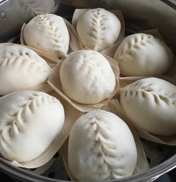 7、把包好的包子放到蒸屜上,等待十五到二十分鐘,可以看到包子的體積明顯比之前變大瞭。這時候開火加熱,水開之後,繼續蒸十五分鐘。關掉火之後繼續燜三分鐘,就可以開始吃瞭。