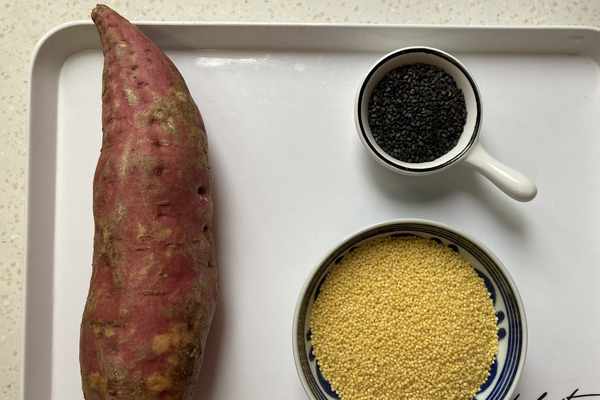 資料:紅薯300克、小米50克、黑芝麻(熟)少許