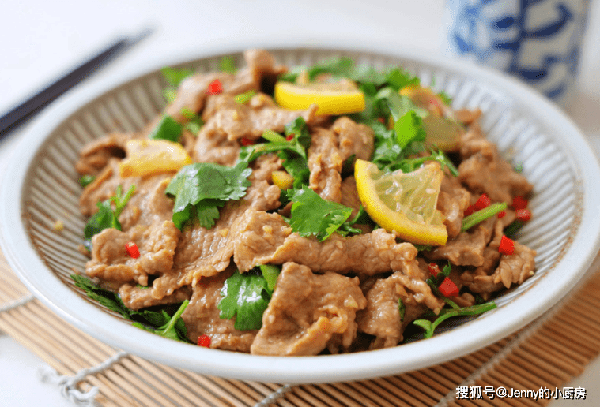 最後加入料汁、香菜、檸檬片攪拌均勻,這道菜就做好瞭。