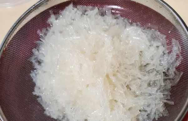 2、瀝幹的寒天條放入柚子茶內,煮到寒天條不見,用少許的鍋子化食用亮粉,等待溫度下降一些食用亮粉可以倒入攪拌,待比較降溫後裝袋,用衣架夾好冷卻定型,或是靠好擺好等待冷卻。