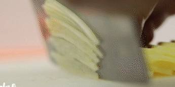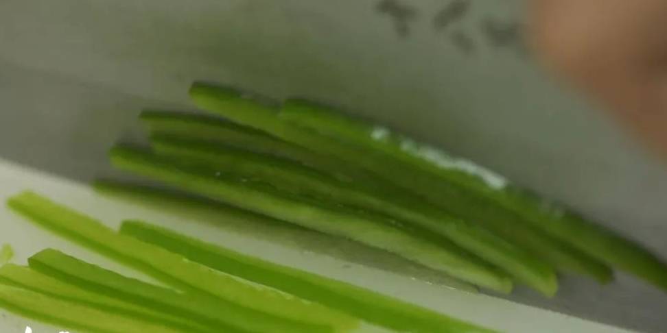 保證切絲粗細一致,這樣受熱均勻改刀正確示范如下▼
