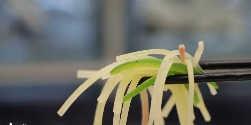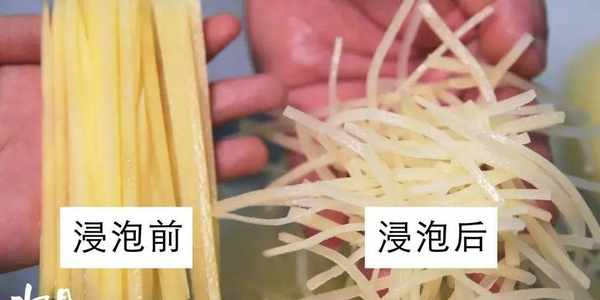 土豆中含淀粉較多,立馬泡在水中可防止氧化變黑浸泡後正確示范如下▼泡完後的土豆絲類似於半透明狀,這樣炒出來才能爽脆。