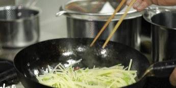 ????Tips:?5成油溫:鍋內冒青煙,筷子周圍氣泡密集?油溫不宜太高,土豆絲起火會有油薅氣,影響口感翻炒完成後,接著將鍋子離開爐灶,顛鍋3-4次,用餘溫加熱。