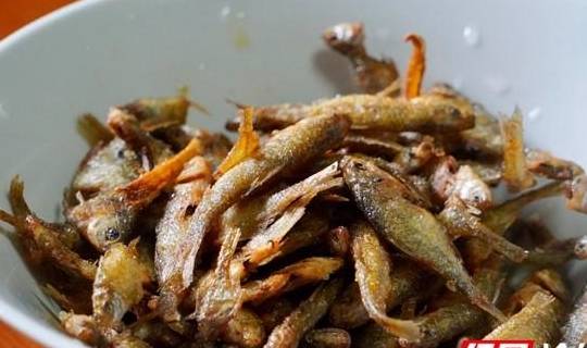 小魚炸好後起鍋,留下適量的油,開大火,把準備好的青椒薑蒜放油鍋裡爆炒,放鹽,再把炸好的小魚崽入鍋,翻炒幾下,青椒小魚崽就成瞭。鮮香酥脆,美味可口,下飯的好菜。