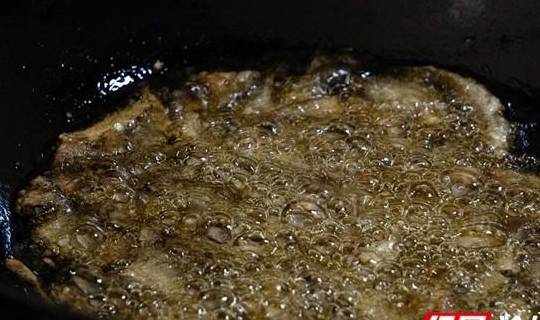 然後用茶油炸,慢火。老公說,油炸魚是有竅門的,油鍋裡放幾片生薑,小魚就不會黏在一起,不會成坨,再小的魚都不會弄碎。