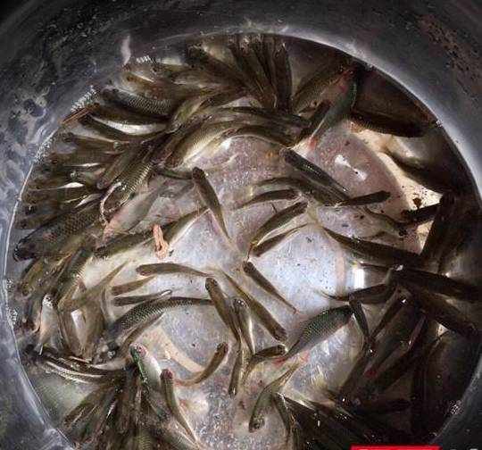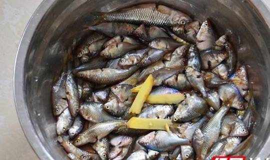 傢裡的小魚池撈上來的小魚崽,擠肚子,清洗,用鹽和生抽拌勻,放置半小時以上。