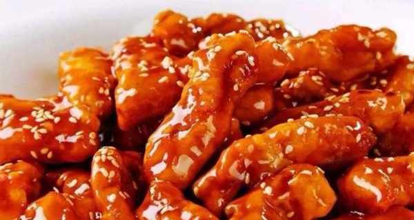 7、芡汁變濃稠紅亮時,加入炸好的肉條,快速翻勻出鍋。