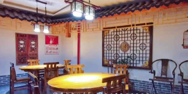 我們在裡運河文化長廊附近的味滿樓裡感受舌尖上的淮安。整個店鋪是古香古色的中式風格,還能看到江南園林裡的亭子、竹林與樹,意境優美。