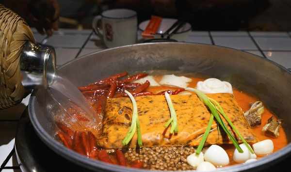 四川火鍋的鍋底主打清油,這樣的鍋底油脂比較薄,但是香氣依然很濃鬱,保留味道的同時,多瞭一份清爽。