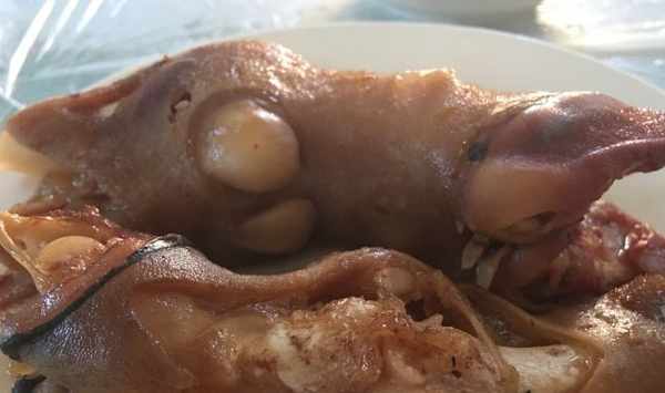 一份羊頭撈起來,老闆會先給你剔骨,把羊骨頭放在盤子裏,羊肉都切得很漂亮。配上大蒜真是香得流口水,他們家的大蒜都放在桌子上,等肉的時候大家不要閑著,可以現剝一點,不然看著別桌的肉真是太著急了,羊蹄個頭比較大,看起來跟猪蹄差不多了,膠質都被燉出來了,麻辣味恰到好處,啃一口羊蹄再來一點小酒,真是太美了。為了保證食材的新鮮,他們家還堅決不外賣,只能堂食,讓你吃到最好的食物最好的火候,一直保持對食物的一種尊重。