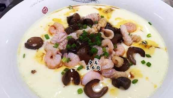 需要食材:雞蛋4個約250克、蝦仁10個、魷魚15克、海參30克、小蔥花1克、老湯375克