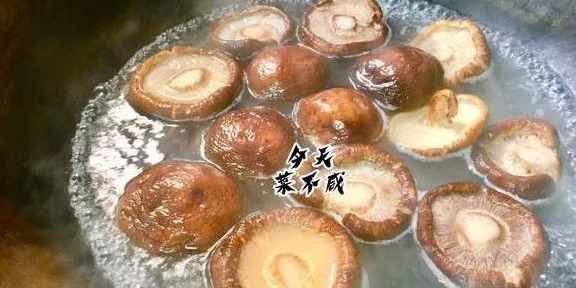 2、香菇洗淨入開水鍋中煮2分鐘左右,撈出去根,片成厚片。大葱洗淨切成段,薑去皮切成薑片,小葱洗淨切成蔥花,紅尖椒切成塊和粒備用。
