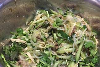 這是一道手撕雞,不過雞肉特別的少,大部分都是一些黃瓜和香菜,我吃的時候就覺得口感很差,完全咽不下去。