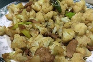 這是一道花菜炒肉,花菜也是前一天的很不新鮮,這些肉也有種怪怪的味道,我一頓飯就吃不下幾個菜。