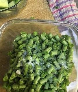 用手把鹽和豆角抓勻,放置兩小時醃制軟化一下!