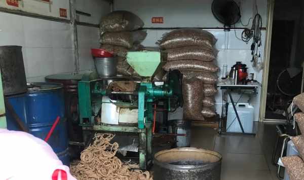 榨油坊的成本利潤分析。我們以一包100斤土豆來計算,現在土豆的出油率在38%-46.5%,影響出油率的主要因素是花生粒本身的品種問題,還有機器設備的效率問題。我們以小李這邊出油率在43.5%來計算,也就是說他的一百斤土豆可以出油43.5斤,現在100斤土豆進貨成本是507元,場地租金、包裝、機器損耗、搬運費、挑選費用、師傅工錢等合計45元,共計成本552元。現在的花生餅收購價為1.9元一斤,一百斤土豆出48斤花生餅,花生餅可以91元,一百斤土豆出43.5斤花生油,他這裡花生油每斤賣15元,合計652.5元,一共可以賣到743.5元,减去成本552元,可以得出每百斤土豆的利潤為191元。像小李這個不起眼的小作坊,他一天可以榨土豆八九百斤,每天純利達到1710元,年收入50萬,做這一行還有一個優勢,就是沒有賒帳。