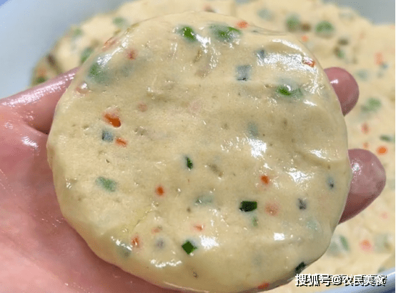 接下來,揪一小塊,放在手心整理成一個圓球,再壓成餅狀,土豆餅的生胚就做好瞭。