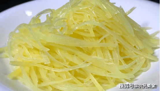鍋中水開,把土豆絲倒入鍋中焯水20秒左右,然後撈出來快速的過涼。控水之後加少許食用油攪拌均勻。