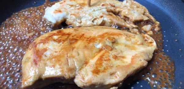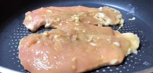 2.準備一口不粘鍋,用噴油壺噴上薄薄一層食用油,減脂期一定要少油少鹽,將醃好的雞身材肉平鋪到鍋裡,開小火慢煎,先不要急著翻面,煎2分鐘左右,煎到四周變白定型後再翻面。