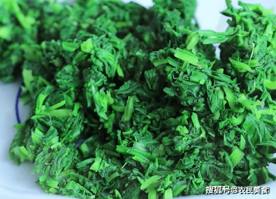 鍋裡提前燒開水,加半勺食鹽,把面條菜放進去焯水兩分鐘,兩分鐘後撈出來。晾涼以後,攥幹水分,切成碎末。