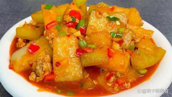 2、調個料汁,先加入兩勺生抽,一點食鹽,雞精,胡椒粉,蠔油,玉米淀粉,小半碗的清水,攪拌均勻備用。油熱後,把肥肉丁煸炒出油脂。再把肉末放入鍋中,炒香炒散。把薑蒜炒出香味。加入一勺豆瓣醬,炒出紅油,然後把蒸好的冬瓜倒入鍋中,炒至上色。再倒入料汁,燒至入味。把青紅辣椒丁,開大火把湯汁收濃稠,最後放入蔥花,紅燒冬瓜就做好瞭。